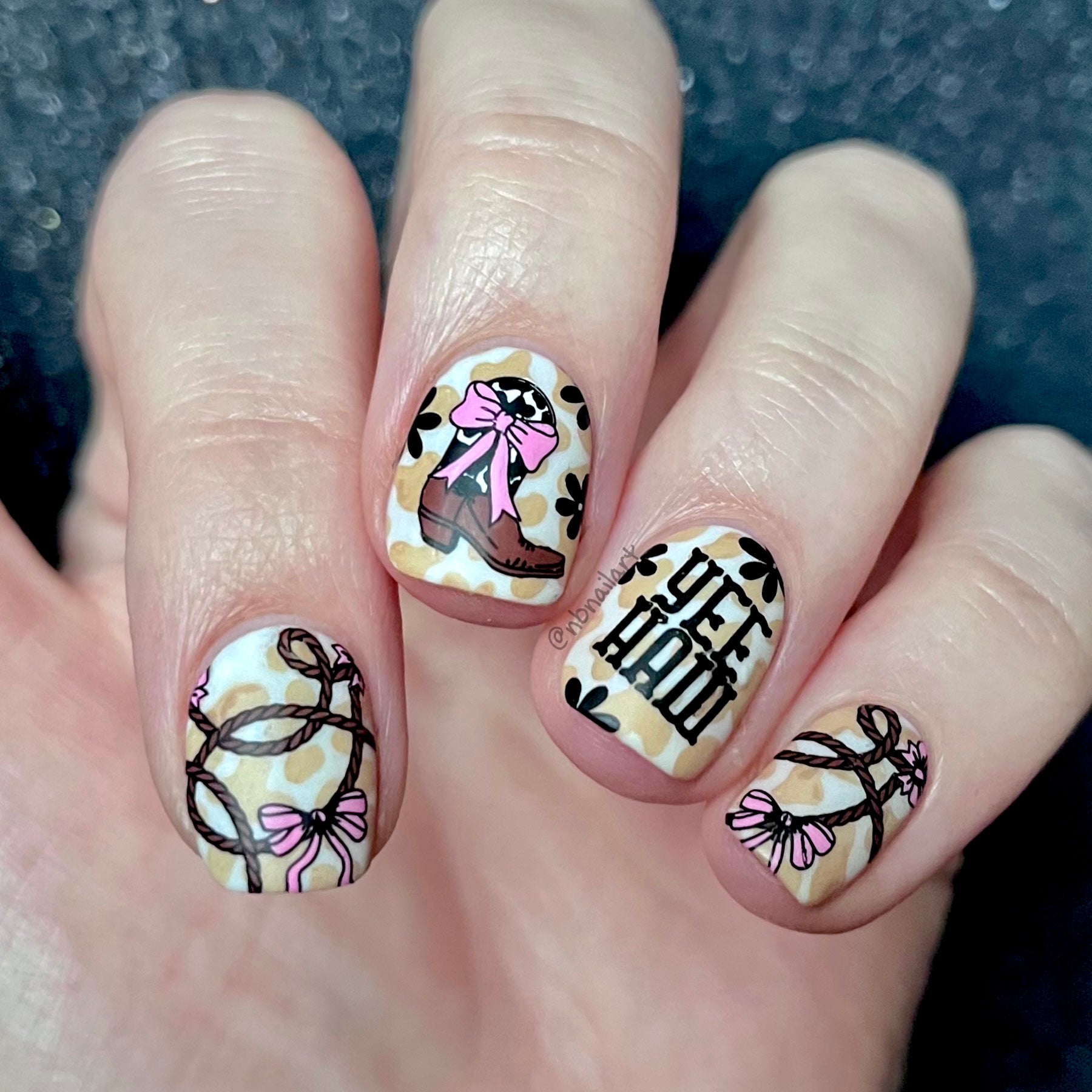 This plate is 9.5 cm by 14.5 cm and has coordinating single images down the center and a few on the sides. Most designs are 17 mm x 21 mm and are built to cover edge-to-edge on even the largest natural nail size. Are small nails left out? Never! Our designs are crafted to not be so overwhelming or large that you can't see what is on your nail - even if it's tiny!
